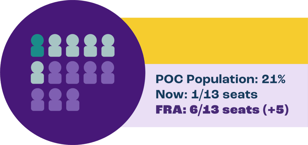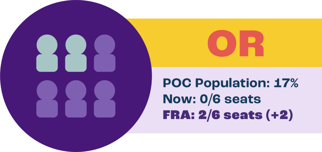 With the Fair Representation Act, a single district could be represented by up to five congresspeople, reflecting the full diversity present within that district.