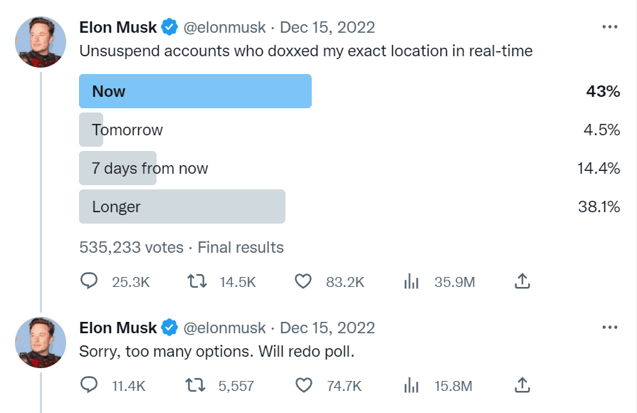Consider Twitter CEO Elon Musk’s recent poll about how the platform should deal with accounts who post celebrities’ locations in real time. After none of the four choices received support from a majority of voters, Musk concluded he had given voters “too many options” and pledged to redo the poll.