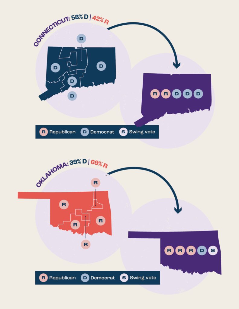 Republicans in states like Massachusetts and Connecticut would finally have representation in their states’ congressional delegation, as would Democrats in Arkansas and Oklahoma.