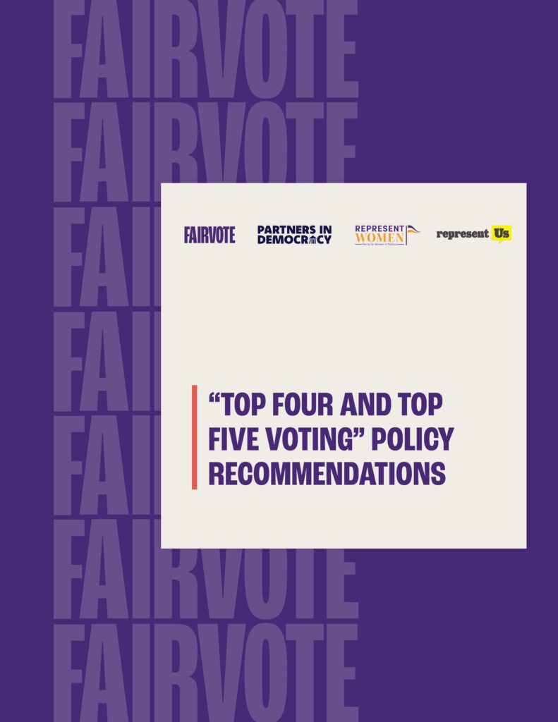 This policy paper describes recommended best practices for using Top Four or Final Five voting. It is co-authored by FairVote, Partners in Democracy, RepresentUs, and RepresentWomen.