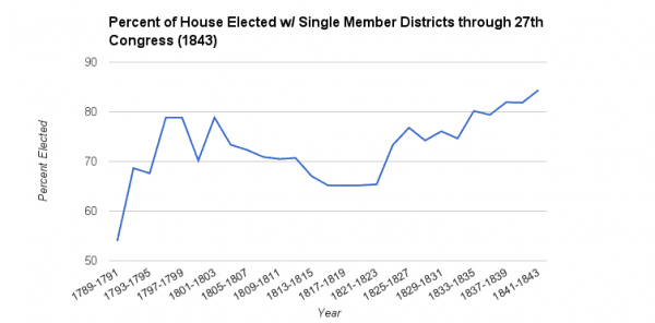 The way we elect Congress has also changed. The U.S. Constitution is silent on the exact mechanisms for electing Congress, leaving it up to the states. In the first few post-revolutionary decades, some states chose to elect representatives using the single-winner district system, in which each congressional district elects just one member of Congress, but others chose multi-winner districts, in which a large district elects multiple winners. In the first Congress, in which James Madison, John Adams, Samuel Adams, James Munroe and Benjamin Harrison ran, 46% of the U.S. House was elected using state-wide multi-winner districts. For the first fifty years of the republic, significant proportions of U.S. House members were elected in multi-winner systems.